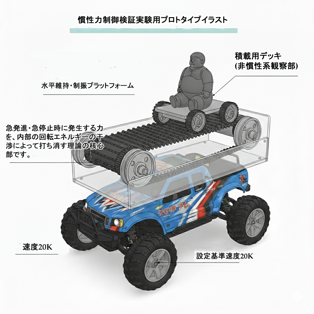- 本技術「ゼロG慣性制御」は、物理的構造の設計を工夫することで、外殻を静止状態に保ちながら、内部のみを加速・移動させるような応用も可能です。これは原理に正と負がある問題ですが、ここでは詳しくお話しませんが、振動や衝撃を抑えた移動・搬送が実現され、医療・福祉・宇宙開発など幅広い分野での活用が期待されます。この箇所に対しては著作権や知的財産に触れますから文中にある知的財産、著作権に関してはお読みください。